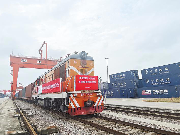 8月13日,中部地区首趟零碳绿色班列从中铁联集武汉中心站鸣笛发车,满载着汽车零配件、日用品等货物,一路向西开往德国汉堡、杜伊斯堡。